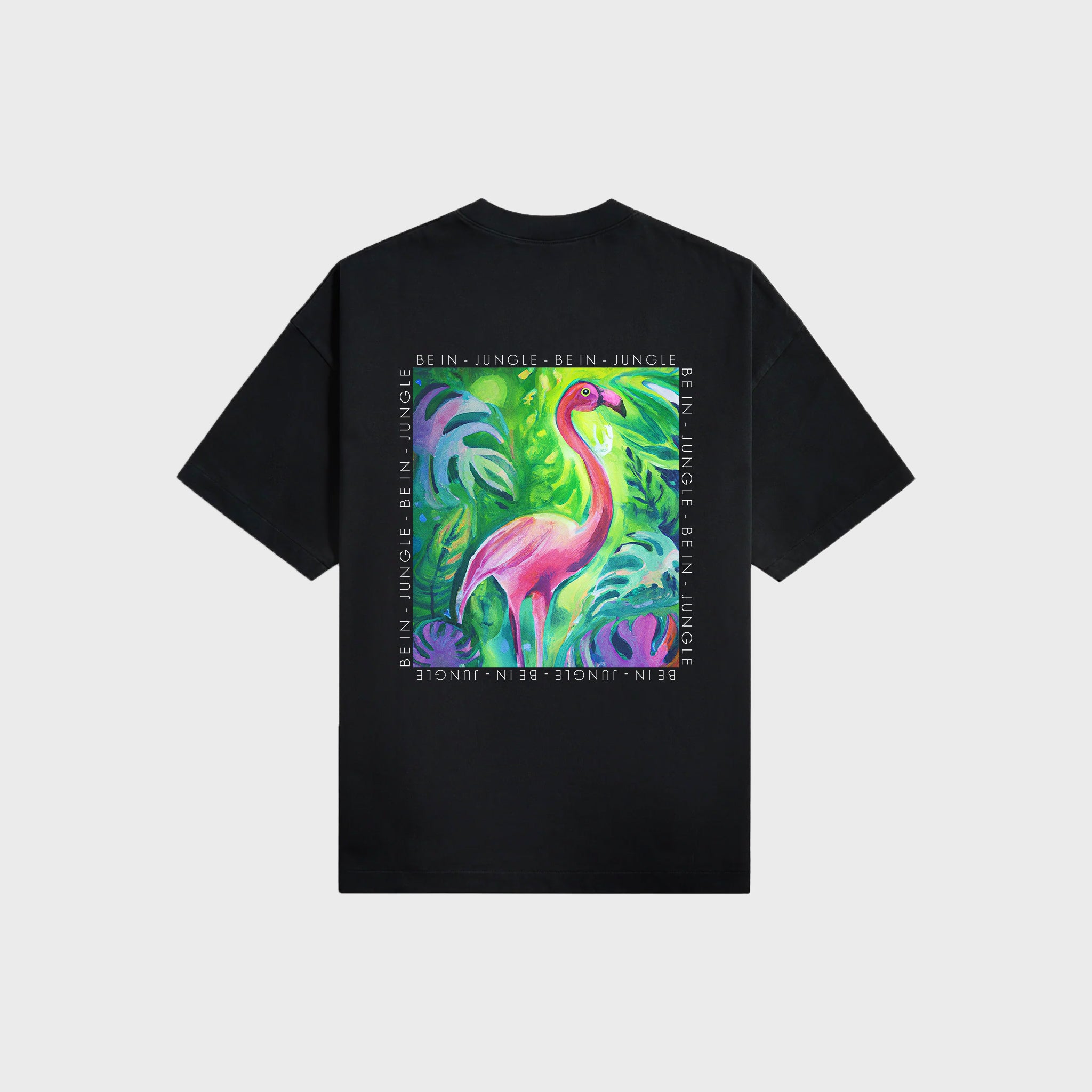 Introducing our first BE IN T-shirts collection "BE IN Jungle" inspired by the subgenre of DnB - Jungle. Made from premium heavyweight cotton, this tee features a full-back print of a pink flamingo standing tall in lush jungle greens. Framed by the BE IN JUNGLE mantra. A nod to the genre’s playful edge and deep roots in Caribbean sound and colours.